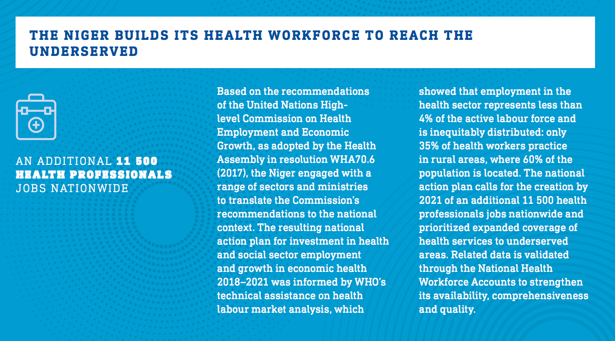 sustained investment in health workers and health systems, as the