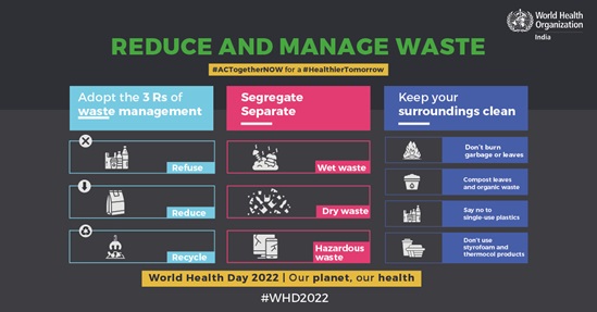 On World Health Day 2022, WHO will focus global attention on urgent actions needed to keep humans and the planet healthy and foster a movement to create societies focused on well-being.