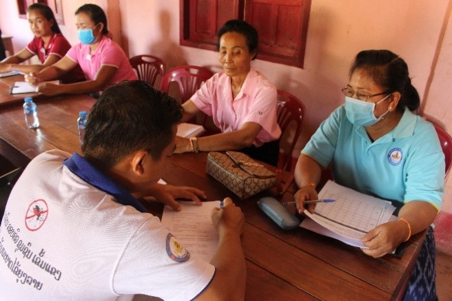 At Xaythany District, Dr Phomma works with the community leaders like Mrs Viengkeo from the village head office. Mrs Viengkeo is responsible for COVID-19 reporting, which has been integrated into reports for notifiable infectious diseases. These reports are presented every Tuesday at the village head meeting, which is attended by the district governor.