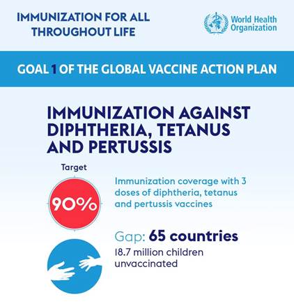 The Global Vaccine Action Plan – endorsed by the member states of the World Health Assembly in 2012 - calls for countries to reach 90% coverage nationally against diphtheria, tetanus and whooping cough by 2015. The Philippines remains as one of the countries which need to reach the target.