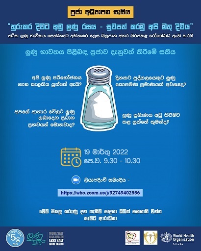 With strong evidence that too much salt is not good and affects a person’s health adversely causing serious illness, WHO Sri Lanka collaborated with the Sri Lanka Medical Nutrition Association and the Directorate of Non-communicable Diseases of the Ministry of Health to give practical tips on how to make a delicious dishes without ‘shaking’ in a lot of salt.