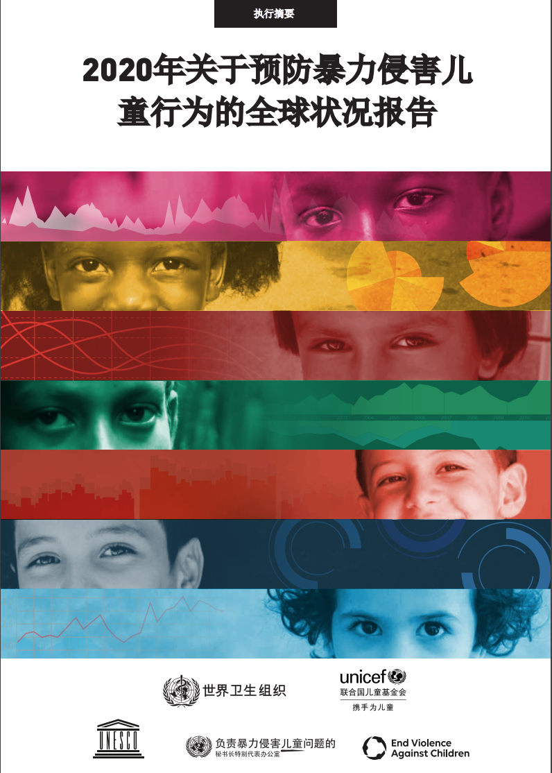 《2020年预防暴力侵害儿童行为全球状况报告》列出了各国在实现旨在终止暴力侵害儿童行为方面的可持续发展目标进展。报告由世卫组织、儿基会、教科文组织、联合国秘书长暴力侵害儿童问题特别代表和全球终止暴力侵害儿童行为伙伴关系联合出版,汇集了来自155个国家的1000多名决策者的意见,他们根据《INSPIRE:消除针对儿童的暴力行为的七项策略》中提出的基于证据的方法评估了预防暴力行为状况。报告显示,许多参与国正在采取一些行动,而这些国家的政府官员承认,他们做出的努力显然不足以实现可持续发展目标。报告最后提出了努力促进INSPIRE的实施以及加快国家进展的建议。